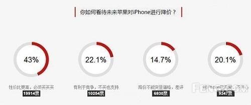 此前库克称iPhone未来或许会降价,调查显示,有43%的网友表示这无疑会增强iPhone的性价比,必须支持;还有22.1%的网友表示,iPhone国内降价将有利于行业之间的竞争洗牌,最终受益的还是用户,所以就算不买也会支持,然而令小编不解的是,这么好的福利竟然还有四成的网友不支持?这剩下的四成嘛,嘴上说降价不能凸显逼格,对iPhone 无爱,其实心里可能想的是既要降价又要买一送一吧。