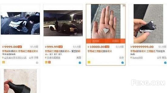 阿里巴巴旗下的淘宝最近也是频频出镜,之前有人卖“活体葫芦娃”,现在又有人卖兰博基尼超跑碎片了,可能大家已经有所耳闻,李易峰一辆兰博基尼顶级超跑LP700-4在北京朝阳区大郊亭桥北侧撞上桥墩损毁。而现在有人将车祸现场的兰博基尼超跑碎片放到淘宝叫卖,看到你们这样,李易峰就放心了:原来我真的很红!