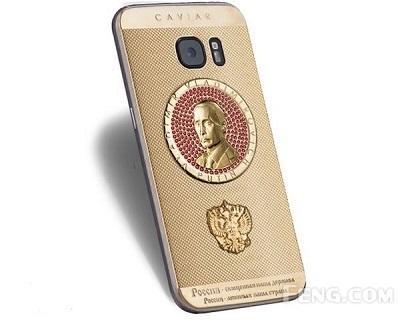 不知从何时起,普京就成了手机定制厂商们的素材来源,近日Caviar公司推出了一款定制版三星S7,手机背面雕刻有普京的头像,其中一个版本还镶有190颗红宝石,并且全球限量3部,每部的售价也非常惊人,达到了27100美元,约合人民币17.8万元,看来要想成为战斗民族的一员,首先就得在花钱方面拿出战斗的姿态。