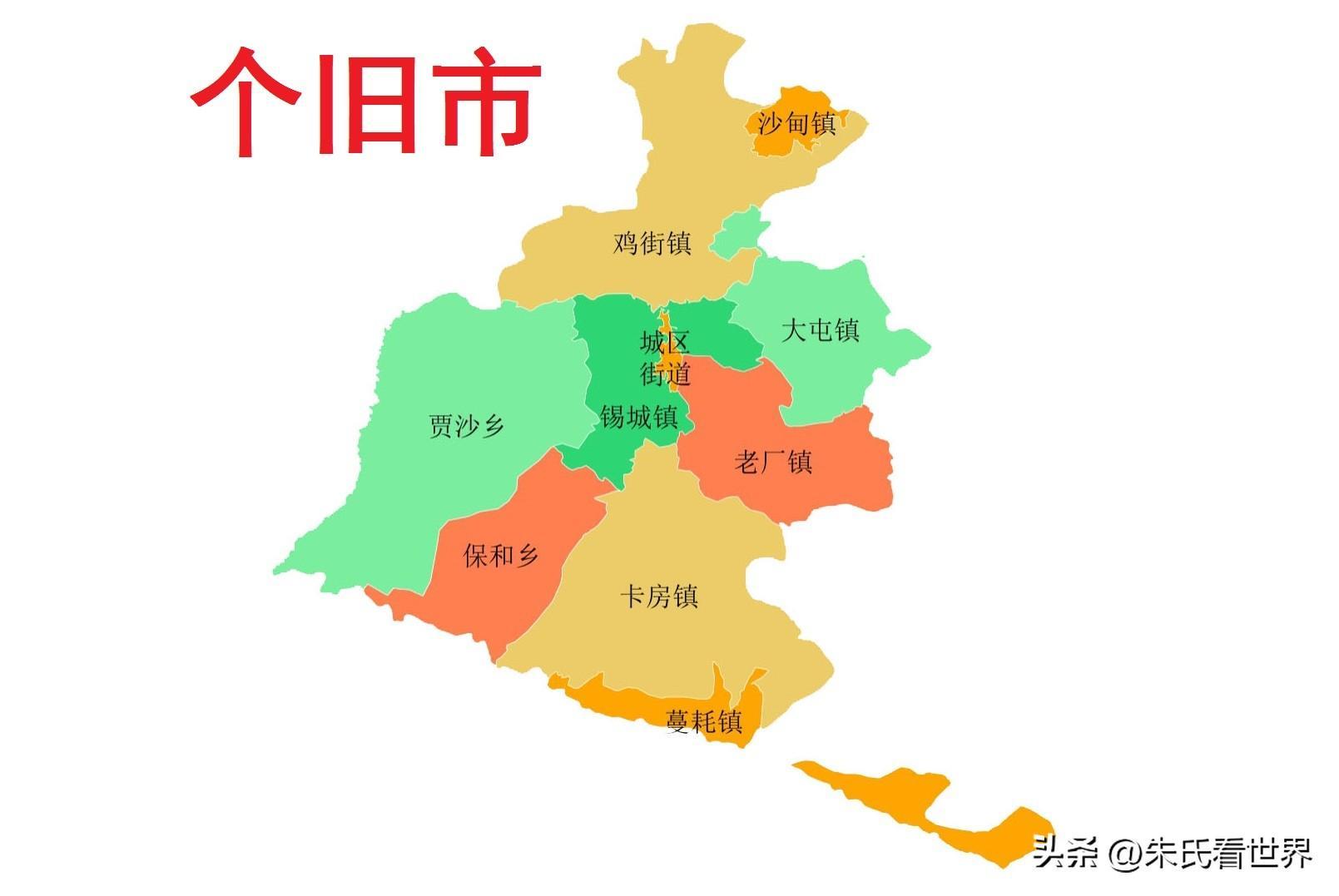 个旧市总面积1595平方千米,辖5个街道、4个镇、2个乡,即宝华街道、沙甸街道、大屯街道、锡城街道、金湖街道、鸡街镇、老厂镇、卡房镇、蔓耗镇、贾沙乡、保和乡。截止2022年末,个旧市常住人口41.98万人。