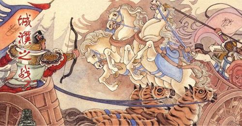 战争正式打响,胥臣出其不意,在马身上蒙上老虎皮,先攻击陈、蔡两军。陈、蔡两军本无斗志,其战马见老虎奔来,无不嘶鸣惊奔,阵型顿时大乱,未接触先逃,楚军的右翼部队溃散了。
