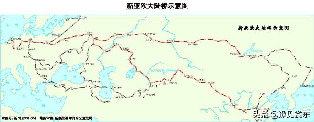 新亚欧大陆桥东起中国的连云港、日照等沿海港口城市,西行出域穿越哈萨克斯坦等中亚地区,经俄罗斯、白俄罗斯、乌克兰、波兰、德国等欧洲口岸,全程长达11000公里左右。因为它是继西伯利亚大陆桥之后连接亚欧的第二座大陆桥,故称“新亚欧大陆桥”。前一条西伯利亚大陆桥相比,新亚欧大陆桥具有明显的优势。1990年9月12日,第二座亚欧大陆桥全线贯通。