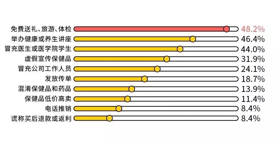 通过免费体检,谎称老年人患有各类疾病,高价推销保健品;