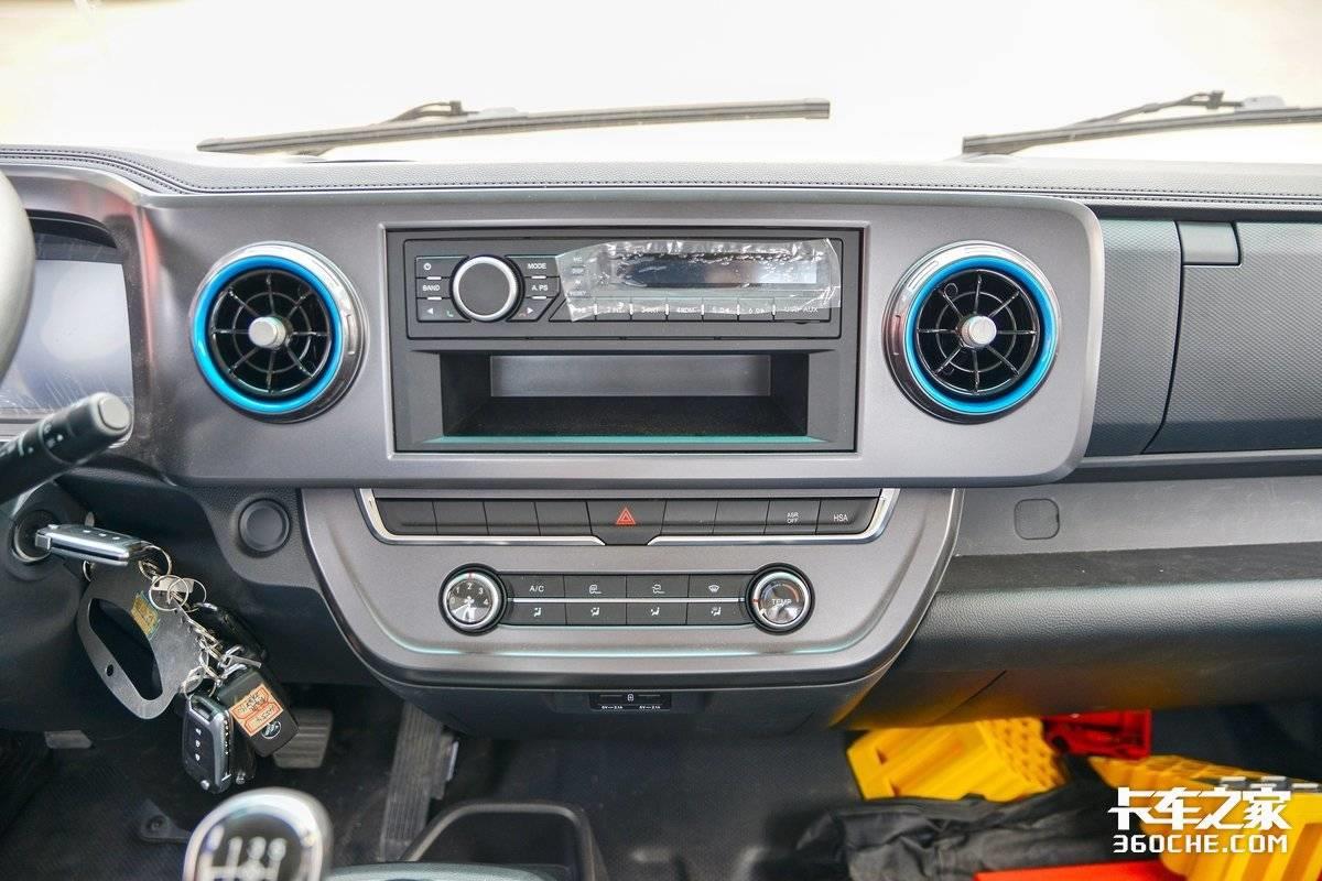 在舒适性上,这台欧马可S3配备有轻卡车型上少见的气囊减震座椅,能够有效提高日常驾乘舒适度。此外,该车还配备有多功能方向盘、电动后视镜调节、电动车窗、收音机、冷暖空调等配置。