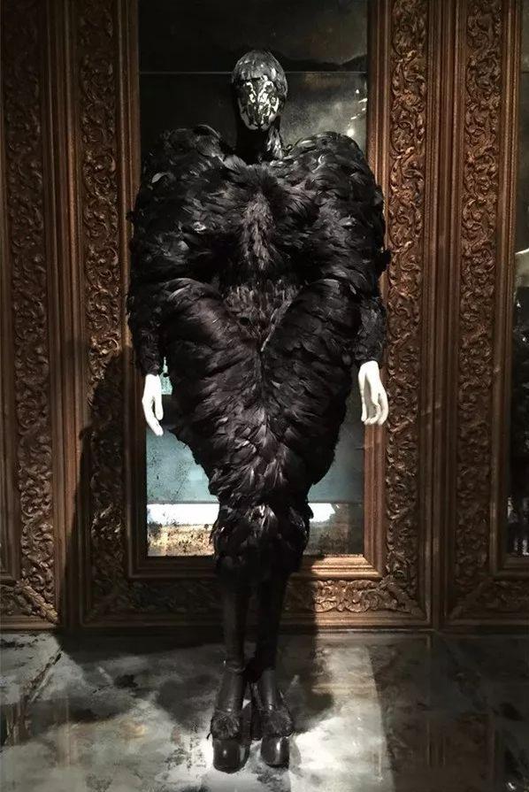 麦昆的设计风格:总是妖异出位,充满天马行空的创意,极具戏剧性。他的作品常以狂野的方式表达情感力量、天然能量、浪漫但又决绝的现代感,具有很高的辨识度。就像麦昆说的“有时候,懂的越多,就越像这世界的孤儿;走的越远,就越觉得这世界本就是孤儿院。”