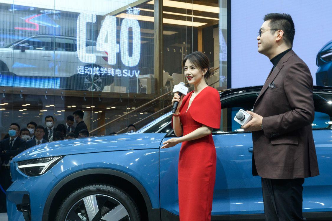 这次应该是现身车展,可以看到她打扮的看起来就是比较的喜庆,穿了一条红色的裙子,这条裙子前面的领子比较低,感觉显得整个人的锁骨会比较的明显,而且肤色也是比较白的那一种,但是脸上还是凹进去了