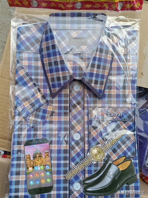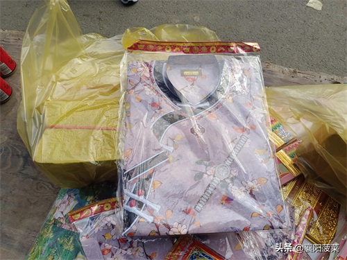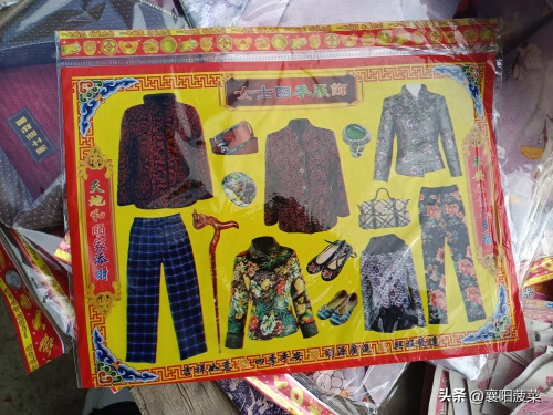 我妈妈在世时告诉我,以前“十月一”不仅烧纸,而且烧用彩纸做的寒衣。前几天,我提前回家上坟在小镇街上买纸和鞭炮时,发现商家开始卖寒衣了,样子看起来还不错,女装是旗袍,附带手表;男装是衬衣,皮鞋、手机和手表;还有女士四季服饰图。不过,鲜见人买。