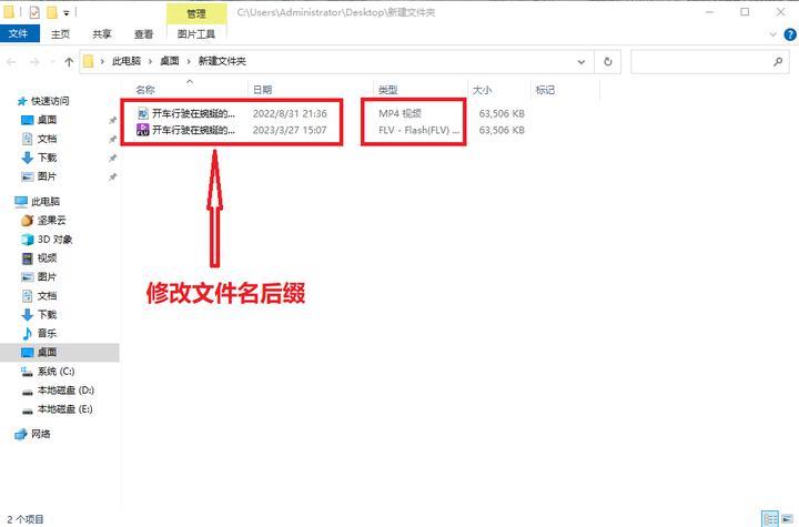 这个方法操作简单,部分视频可以直接运用此方法修改格式,但是也易出现文件格式损坏不能使用的情况,不过这个时候我们也可以直接将后缀改回去尝试使用其他方法。