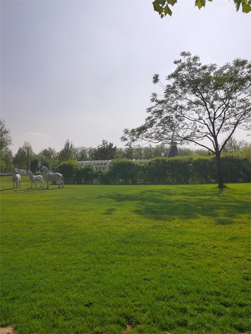 公园里面郁郁葱葱的草坪,公园管理特别好,随处可见的保安维持园内游玩秩序
