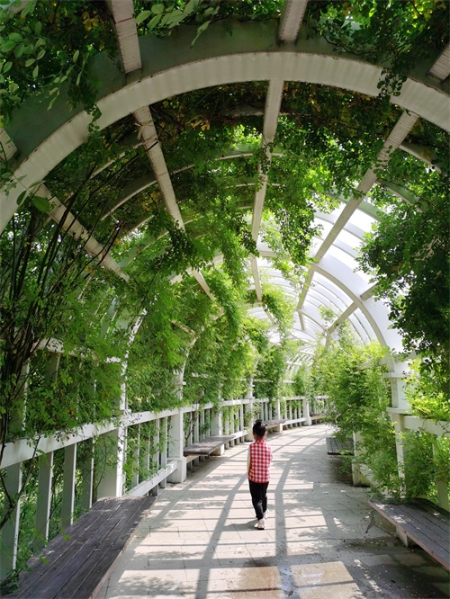 公园里面有很多这样大大小小的廊道,特别适合拍照,随手一拍,就很美丽