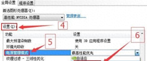 点击左侧的“管理3D”,之后使用再点击“全局设置”下方的“自动选择”项目,在弹出的菜单中使用点击“高性能NVIDIA处理器”。接着,在设置列表中找到电源管理模式,点击窗口右侧的“自适应”,在弹出的菜单中选择“最高性能优先”。设置完成后,点击“应用”保存设置即可。