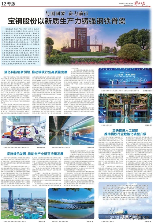 在新中国成立75周年之际,《解放日报》专版刊发报道,宝钢股份正以昂扬的姿态,勇担“大国重器”之使命,以新质生产力铸强钢铁脊梁。