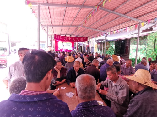 一边看戏,一边打牌(大田县建设镇,2021年)