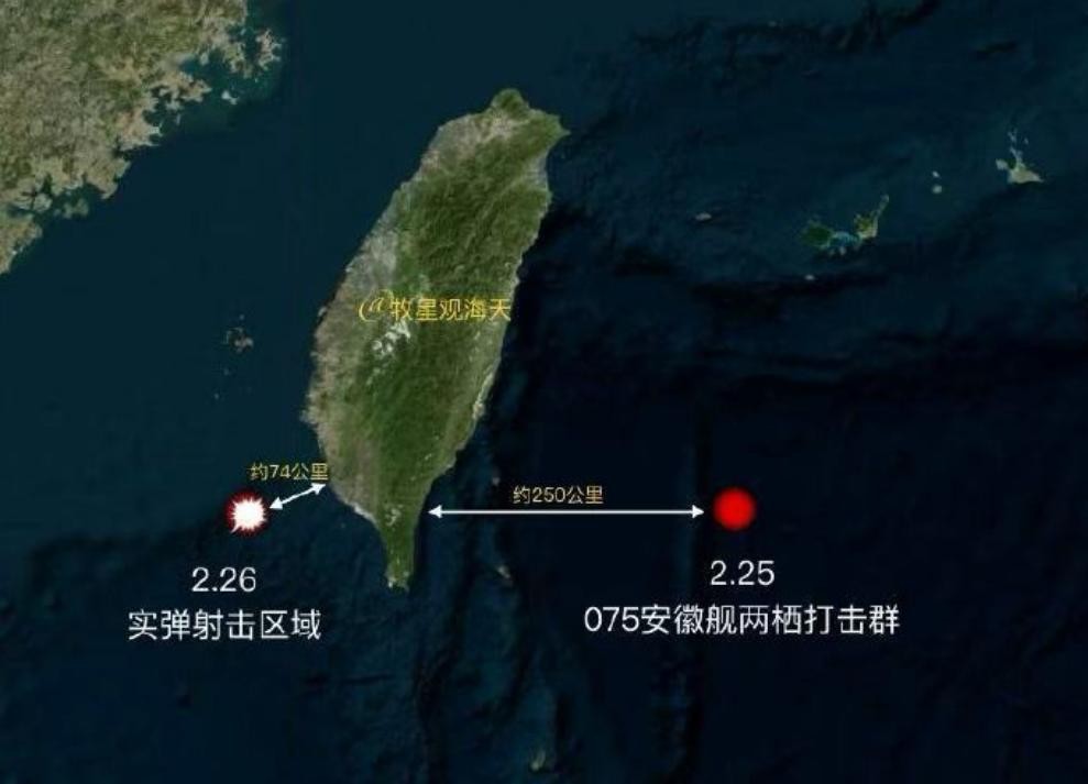 更重要的是解放军的安徽舰编队也在台岛的东部海域活动,这两个动作几乎是同步的,而且一东一西。
