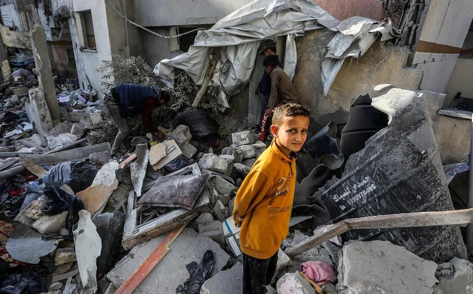 以军空袭后,加沙地带南部城市汗尤尼斯满目疮痍。