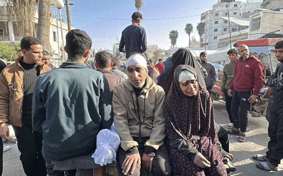 一名巴勒斯坦男子在加沙地带北部拜特拉希亚的印尼医院哀悼在以色列袭击中丧生的亲人。
