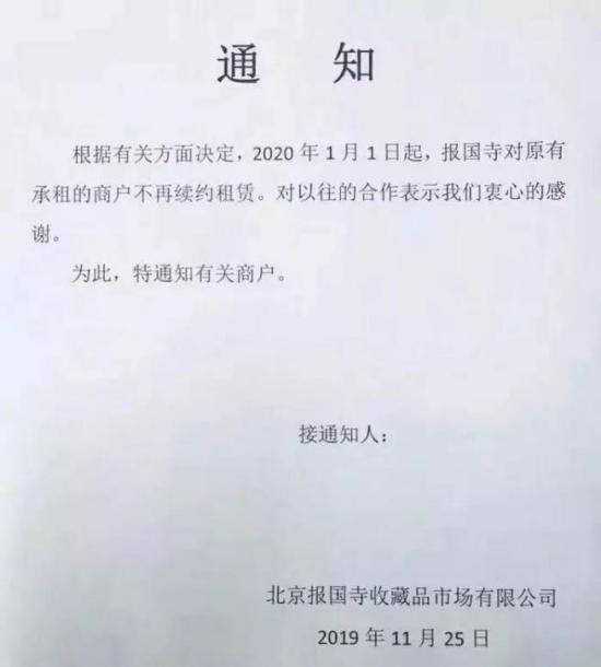 2019年11月25日,报国寺的商家陆续收到一则通知。