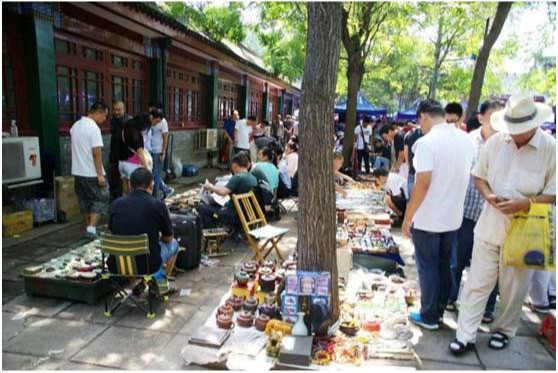 可居住在这附近的居民和每一个古玩人都知道,这里曾是北京二环内最大的古玩交易市场。地摊的繁盛令人记忆犹新,蔓延到马路边和胡同深处,巨大的市场,无尽的人流,从早到晚的喧嚣,熙熙攘攘。杂乱而秩序井然,每个到来的人都悠然地徜徉在自由闲适的空气中,享受着天然自在的地摊文化——那是一个时代!
