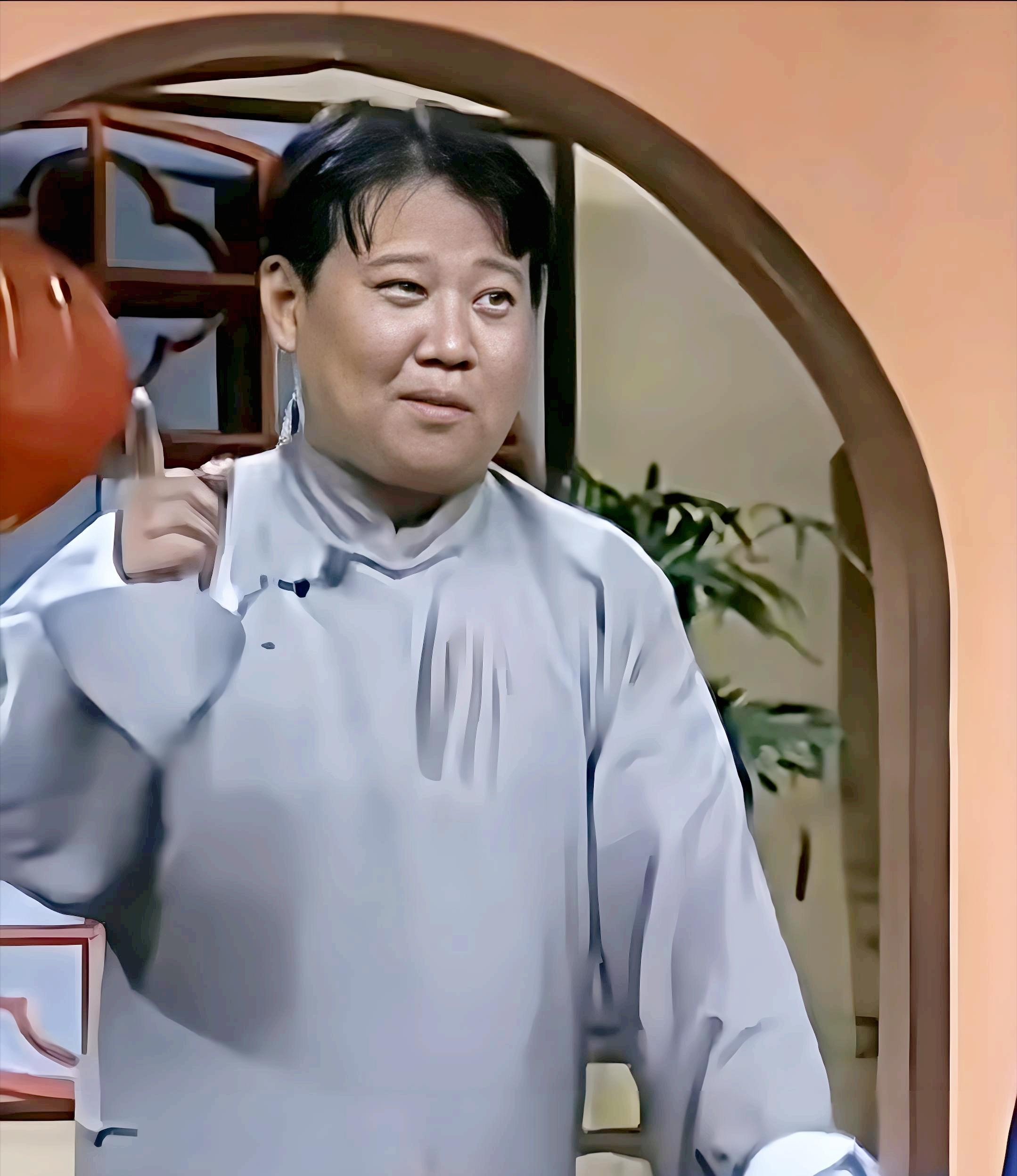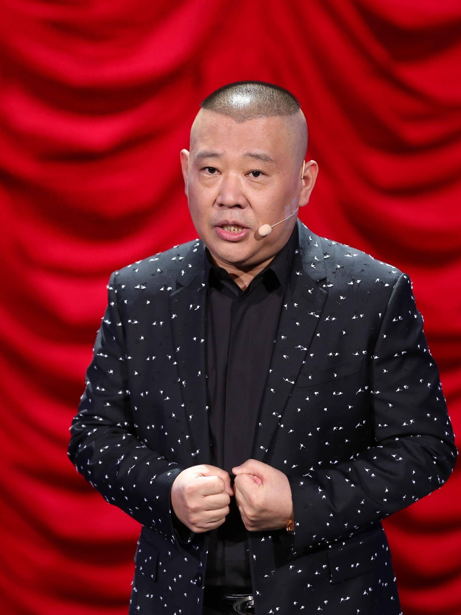 郭德纲剃着标志性的桃心头,大脸盘、粗脖子、肚腩突出,一副典型的中年男人体态。