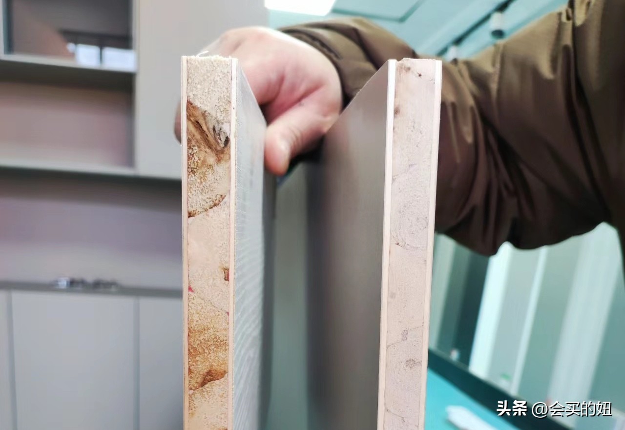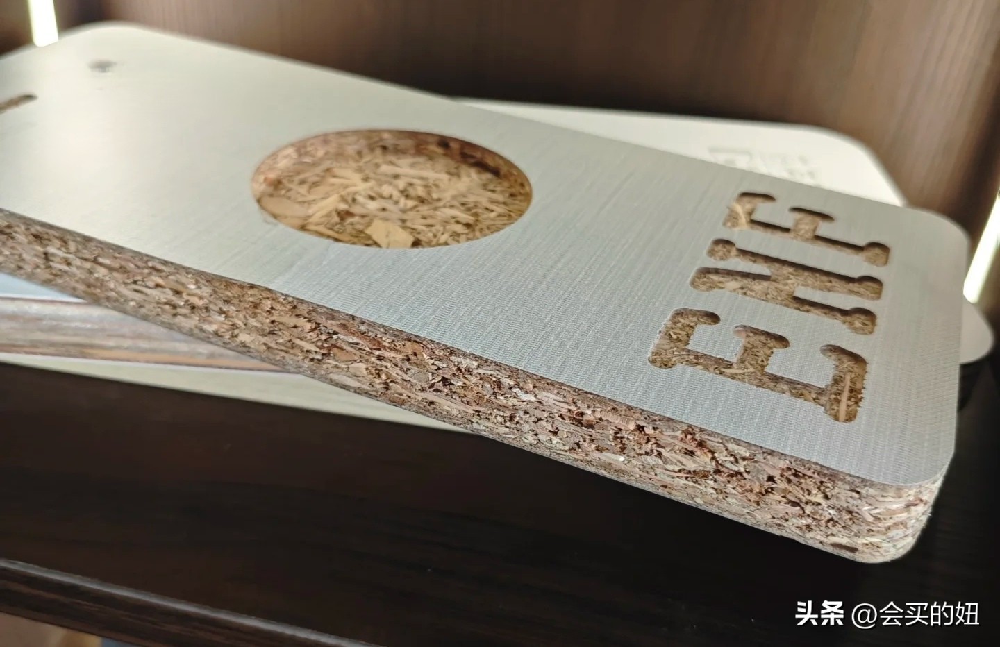 注意事项:有的全屋定制大牌会在板材名字上玩噱头,起一些花里胡哨的名字,诸如“康纯板”“爱心板”“小森板”……其实都是普通的颗粒板,只是换个名字贴个牌然后卖高价,我们不值得为此买单。