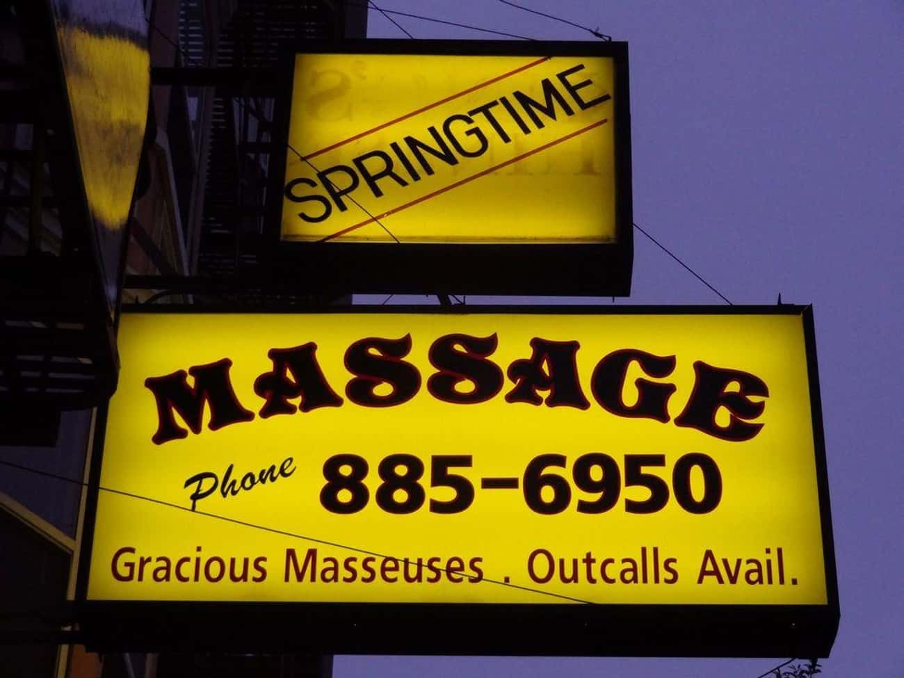 当然,在这个国家的其他地方,也有非法的机构。他们往往以一些最不引人注目的方式出现在几乎每个大城市。未经授权的性服务企业,最喜欢使用的一个门面是按摩院,女性可以在按摩后提供性服务。从2013年到2016年,美国警方在圣何塞查封了20多家未经许可,伪装成按摩院的妓院。