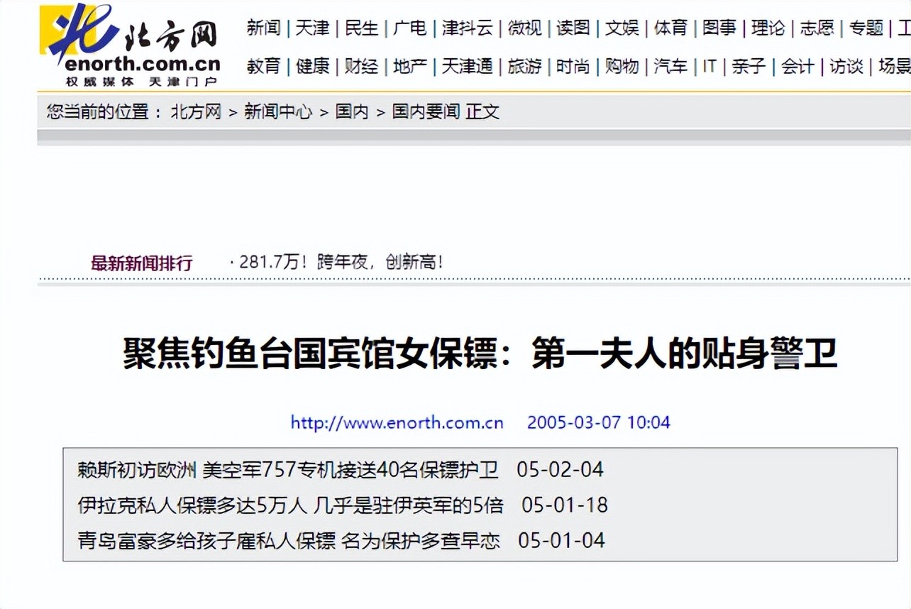 北方网2005-03-07发布的《聚焦钓鱼台国宾馆女保镖:第一夫人的贴身警卫》