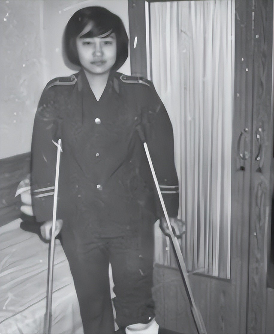 一次训练中,她不小心摔断了腿,医生建议休养,但她却拄着拐杖坚持参加理论课,并在双杠上练习上肢力量。