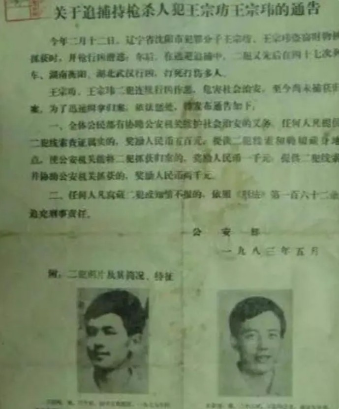 1983年5月17日,公安部发布了悬赏通缉令,提供线索奖500元;提供地址奖1000元,帮公安机关抓捕,奖2000元