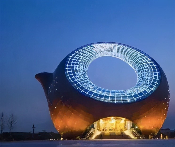 毫不怀疑,这个建筑造型就是宜兴紫砂壶。
