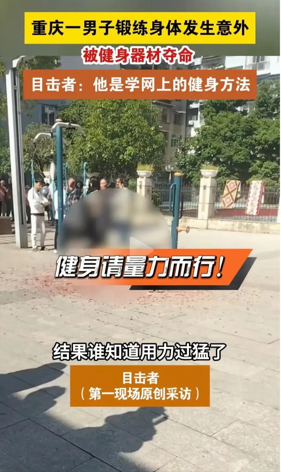 2024年5月15日,重庆某小区发生了一起令人痛心的意外事件——一名锻炼者在使用健身器材时不幸被吊死。