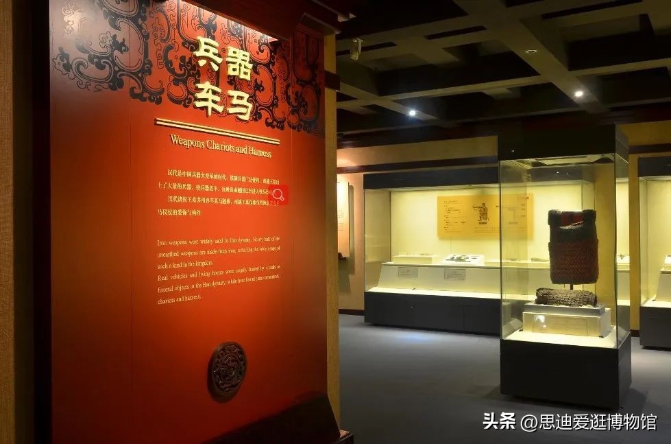 南越王赵眜之墓中随葬了大量的铜铁兵器,是南越国当时武备发展的一个缩影。其中的部分器物还有明显的秦文化特征,如张仪戈、弩机、铁甲等。此外,因墓室面积较小,墓中并没有随葬车马实物,而是以模型代替,可惜模型漆木已毁,仅留下鎏金车饰件和马器饰件。