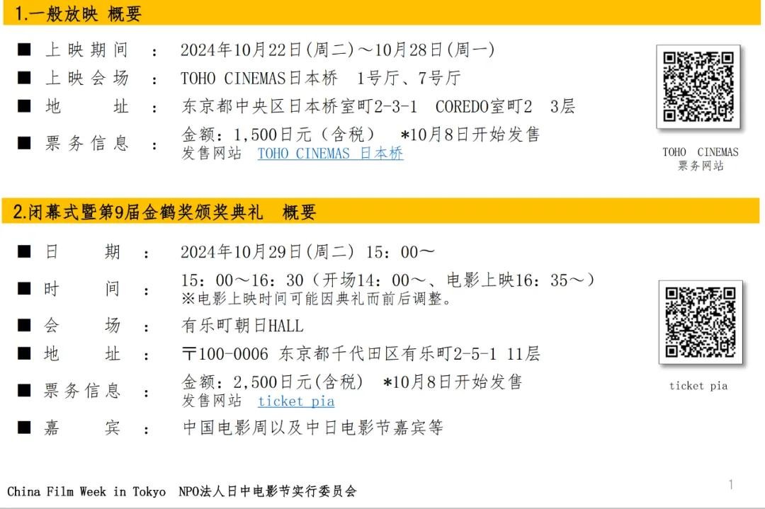 电影周的压轴活动将是10月29日于有乐町朝日HALL举行的闭幕式暨第九届金鹤奖颁奖典礼。届时,中日两国电影人将齐聚一堂,见证这一交流与合作的高光时刻。金鹤奖旨在表彰为中日电影交流作出卓越贡献的电影人,推动两国文化的深度融合。