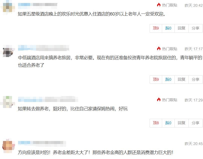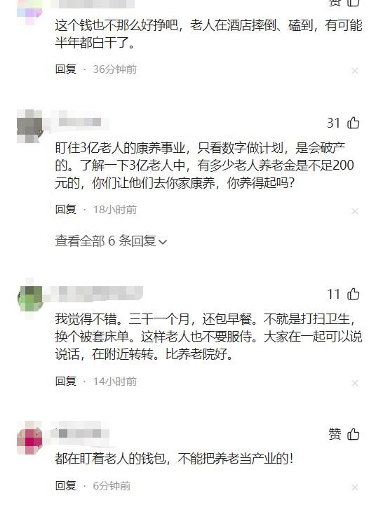 也有人持怀疑态度,认为目前市场上的养老酒店并未真正解决老年人的核心需求。一些网友指出,“很多所谓的养老酒店只是在服务内容上加了一点老年人元素,本质上还是传统酒店。”还有人担心,随着市场竞争加剧,养老酒店可能会变成“高价低配”的代名词。