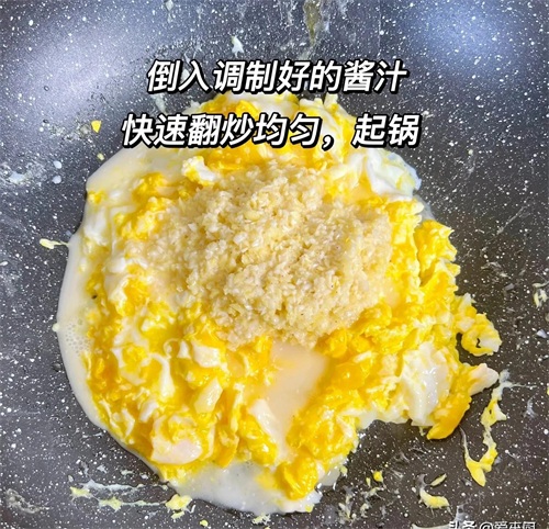 4. 当鸡蛋刚凝固的时候,就关火盛出来,大家一起享用。这道菜的颜色金灿灿,香味扑鼻,让人垂涎欲滴,尤其适合全家人围坐一起吃。