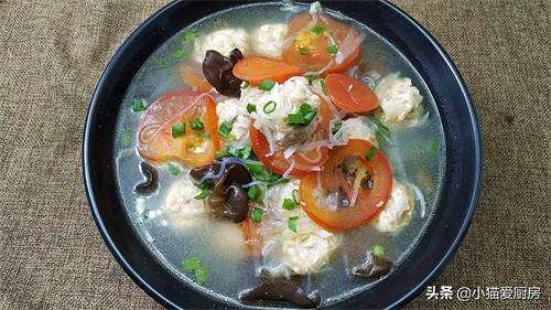 (2)木耳和粉丝要要提前泡好,用以节约烹饪时间,西红柿可以去皮。也可以不用去皮。