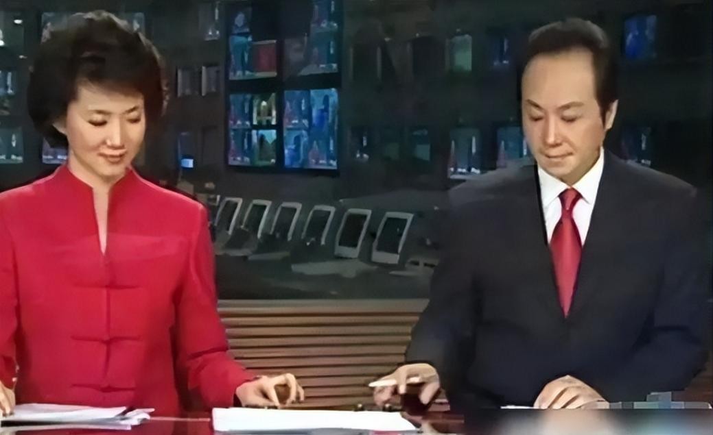 2004年,罗京与李瑞英正在演播室内进行《新闻联播》的正常直播。