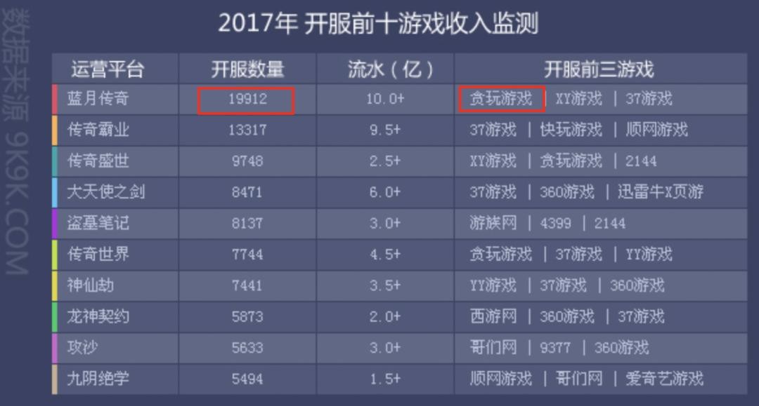 2017 年,《蓝月传奇》开服总量是全网页游第一,而在代理商里,开服最多的又是贪玩……