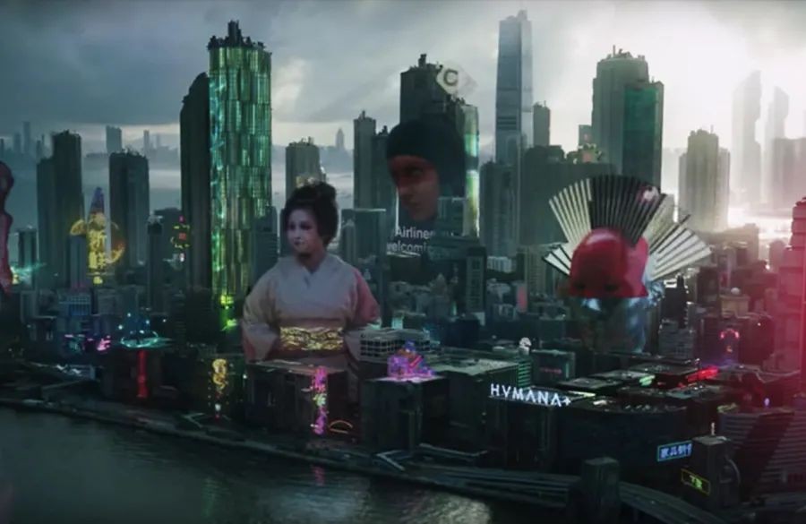 里面就用了大量虚实结合的日本城市场景,可谓是教科书式的赛博朋克场景。