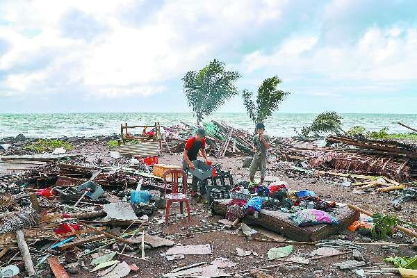 2018年12月24日,受灾民众在印尼万丹省海啸灾区进行清理工作。印尼西部巽他海峡海啸死亡人数已经上升至373人。