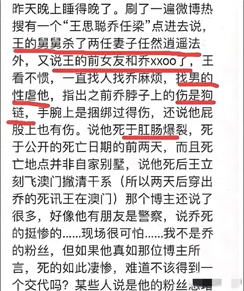 此外,还有网友提到W先生和X先生的名字,这两位神秘人物究竟是谁?他们与乔任梁之间又有什么样的联系?这些问题浮现在大家心头,让人对事件的真相感到更加好奇和焦虑。