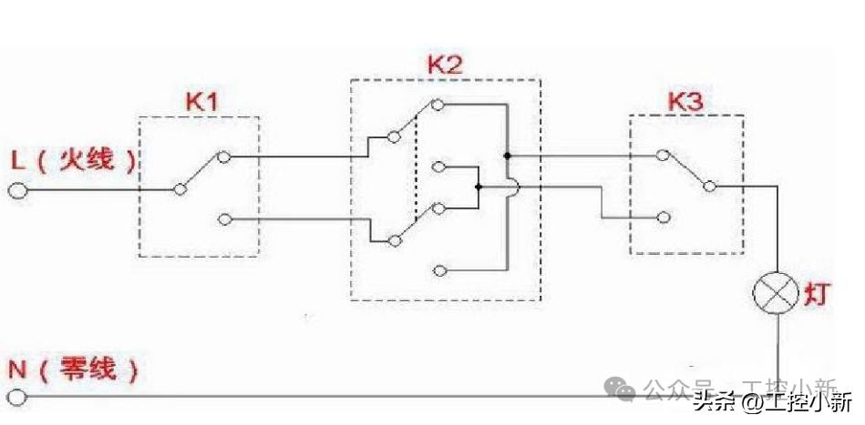 三控电灯开关接线图: