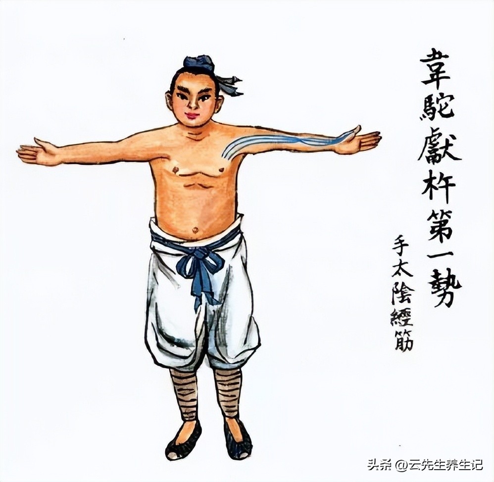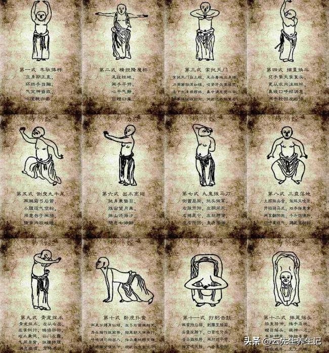 易筋经,源于我国先秦时期术士的导引之术,也是修炼之人打坐悟道的必练功法。易筋经有内功和外功的区分,目前网络流传的易筋经十二式就是外功。从我个人的练习体会看,易筋经跟八段锦、金刚功有很大区别,更多偏向于武学或者禅功一类,更注重拉伸拔筋,每一式动作对应一条经筋。