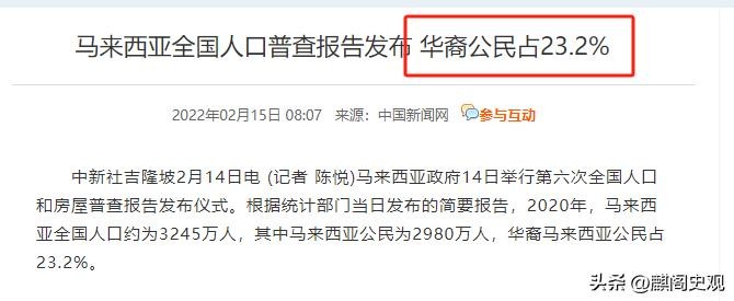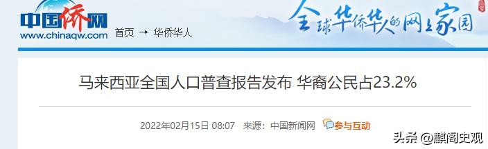 中国侨网2022-02-15《马来西亚全国人口普查报告发布 华裔公民占23.2%》
