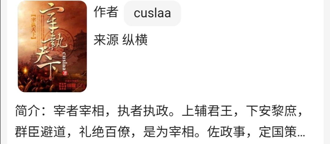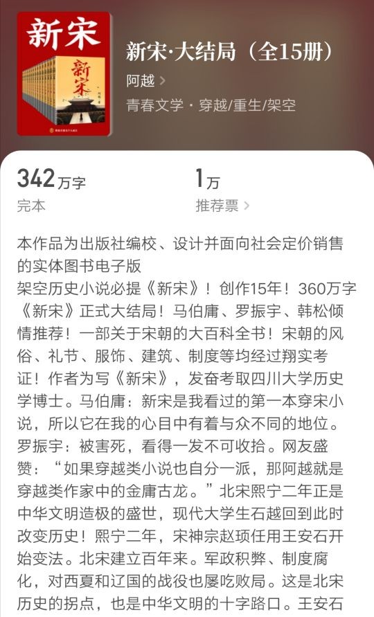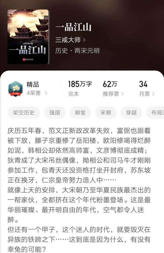 这本小说有很多书友跟我推荐,因为当时还没有完结,并且不是在我经常阅读的网站发布,所以一直没有看,此次为了整理宋朝有关的小说,特意去看了,因为提到宋代的历史架空小说,《宰执天下》是必然占有一席之地的。