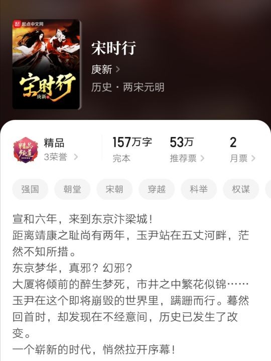 第一次看这本小说,已忘了是哪年,只记得当时还没有完本,而后来这本小说因种种原因拖延的时间太久,于是也没有再捡起来。最近一直考虑整理一批宋朝的历史架空小说,才重新翻开这本书。