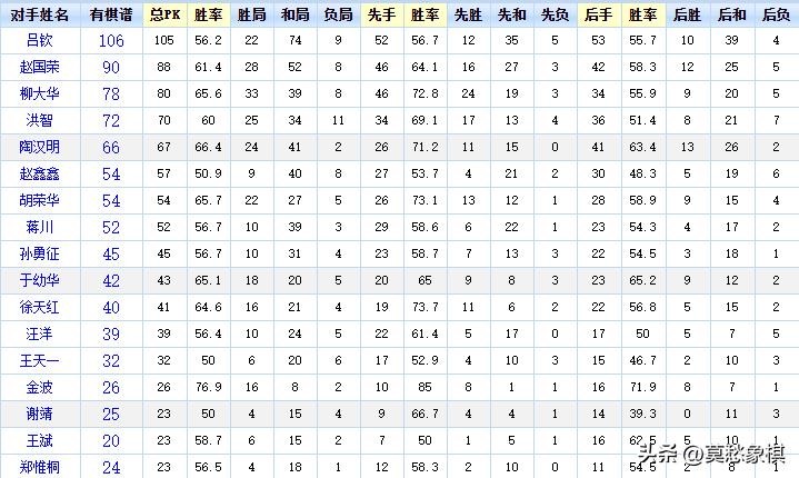 按理说,许银川荣誉无数,应该可以向更高的层次冲击,比如,也拿个10个冠军、甚至更多。给大家说一个数据就清楚了,许银川与所有的高手交战,全部都是正战线,胜率均超过了50%,唯一的一个就是与外星人王天一是50%,他们战线55开。