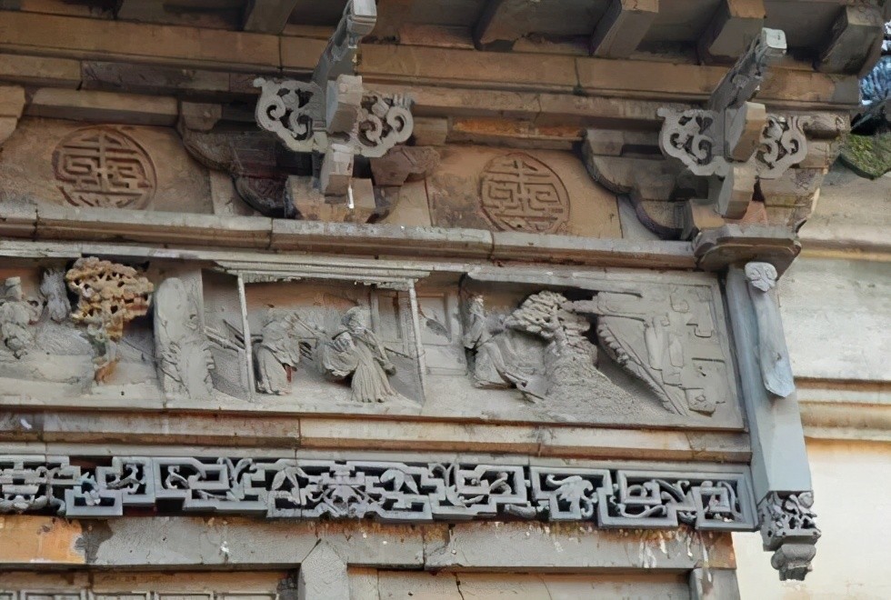 祠堂门口的石碑上,详细记录着祠堂开始,以及重修时的详细记录。祠堂坐北朝南,三开间三进深布置,屋顶能够看到彩色的脊饰,人物刻画得很逼真,上面的每一幅画,仿佛都在跟现代人讲述一段可歌可泣的故事似的。