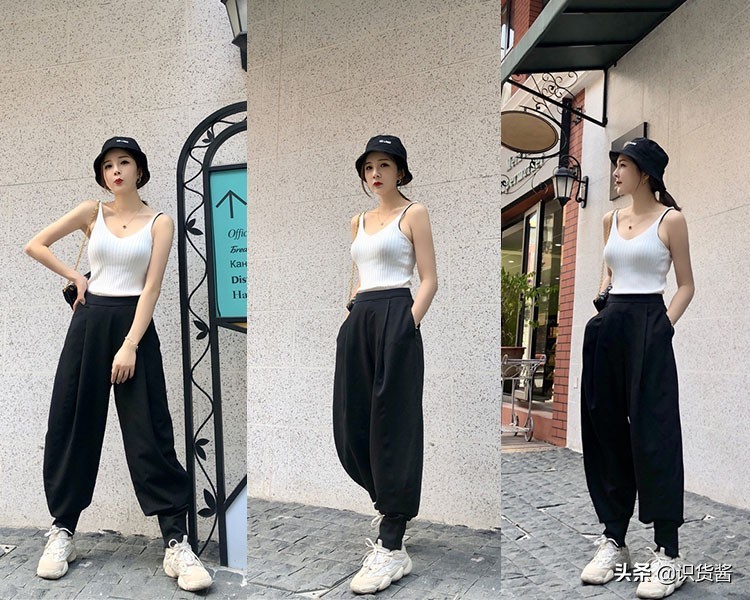 束脚裤的裤型很是奇妙,宽松的裤腿能包容各种腿型,露出的纤纤细腰与胖胖的裤腿形成极大反差,整体给人的效果确实出乎意料的显瘦。为什么说束脚裤在今年特别的火,这不是空穴来风,心细的菇凉们会发现,各大秀场都被束脚裤挤得满满当当,尤其是明星们的机场秀,早早的就穿起了束脚裤,可甜可咸,能顺应变化出各种风格,谁穿谁时髦。
