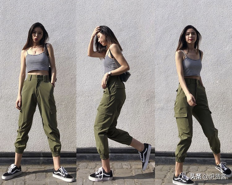 工装风束脚裤作为经典款,当然也是不能少的,一方承载着帅气,另一方面又是英气,尤其是搭配恰到好处的露脐装,突出身材比例的同时,视觉上有着立竿见影的显高效果。不过,我最喜欢的还是多口袋的设计,简单好看又能让整体看起来挺阔有型,更显品质感。