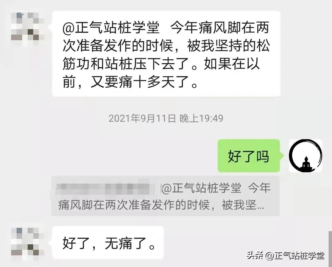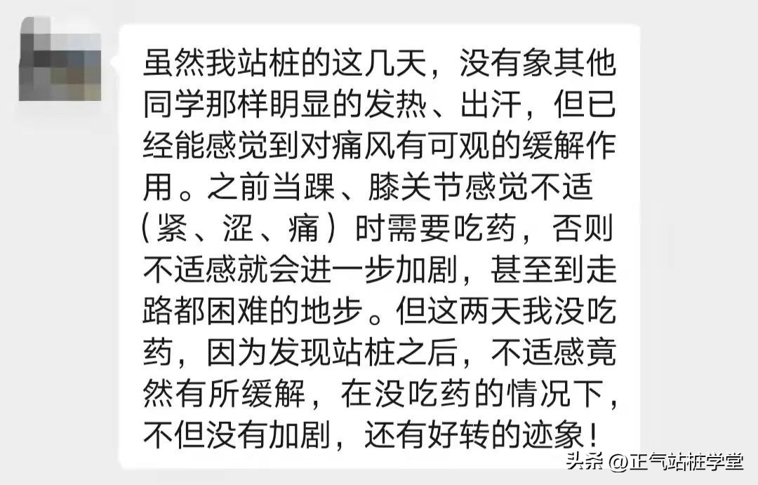 还有一些站桩会员说他原来有痛风,站桩后才发现原来站桩对痛风也有缓解作用,甚至痛风发作时的不适感也没有了。